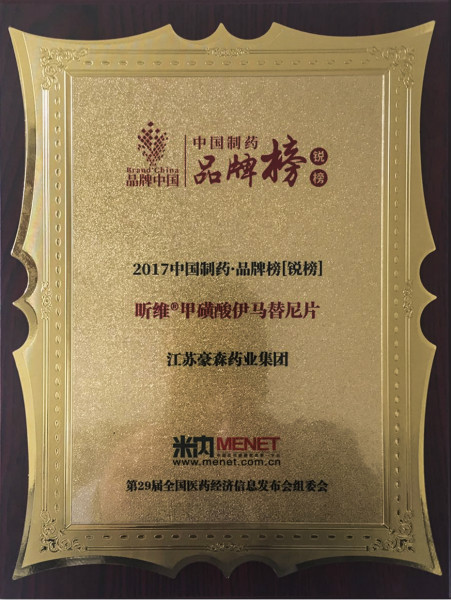 11月9日下午,2017「中国制药•品牌榜锐榜」在第29届全国医药经济信息发布会上盛大发布并举行隆重的颁奖仪式。江苏乐天堂FUN88药业集团的抗肿瘤新药昕维®甲磺酸伊马替尼片等17个品类36个品牌成功上榜。