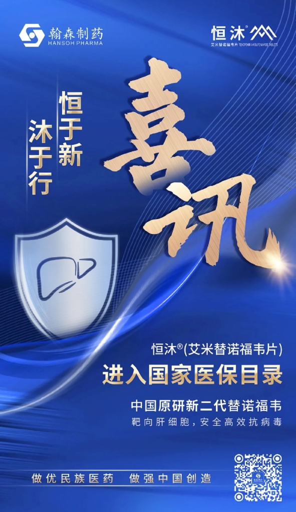 数据显示,我国仍是“乙肝大国”,慢性乙型肝炎病毒感染者约7,000万例,其中慢性乙型肝炎患者约2,000万-3,000万例,防治工作任重道远。恒沐®成功纳入国家医保目录,将给成人慢性乙型肝炎患者提供低剂量、高效和安全的新治疗选择,带来长期用药、依从性更佳的新治疗方案,改善生命质量,提高生活品质。
