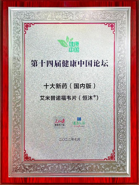 2022年8月3日,第十四届健康中国论坛发布“十大新药(国内)”榜单,翰森制药恒沐®(艾米替诺福韦片),作为首个中国原研口服抗乙肝病毒(HBV)创新药荣耀上榜!